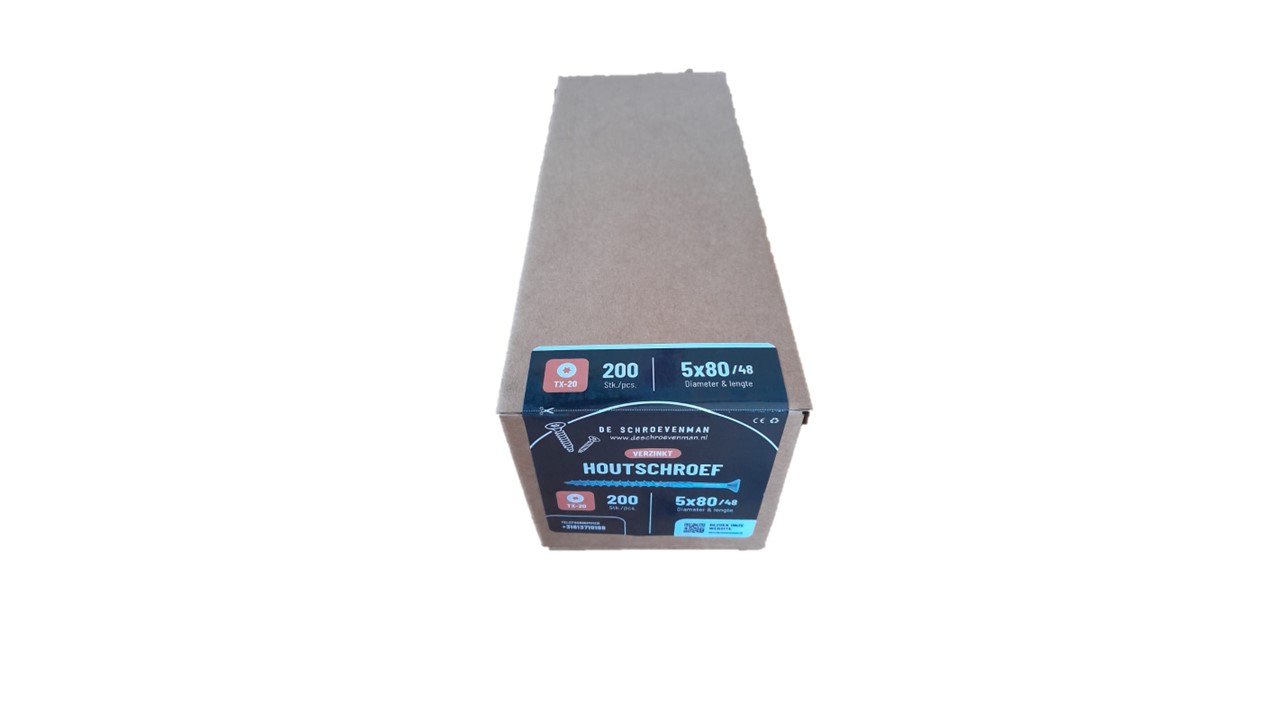 Houtschroef 5×80 deeldraad 200 stuks.